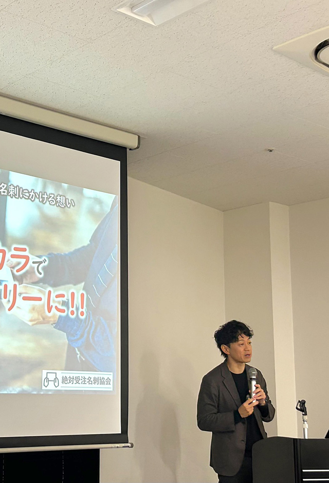 営業ツールが手に入る実践的な企業研修、絶対受注名刺のメソッドをお伝えするセミナー、